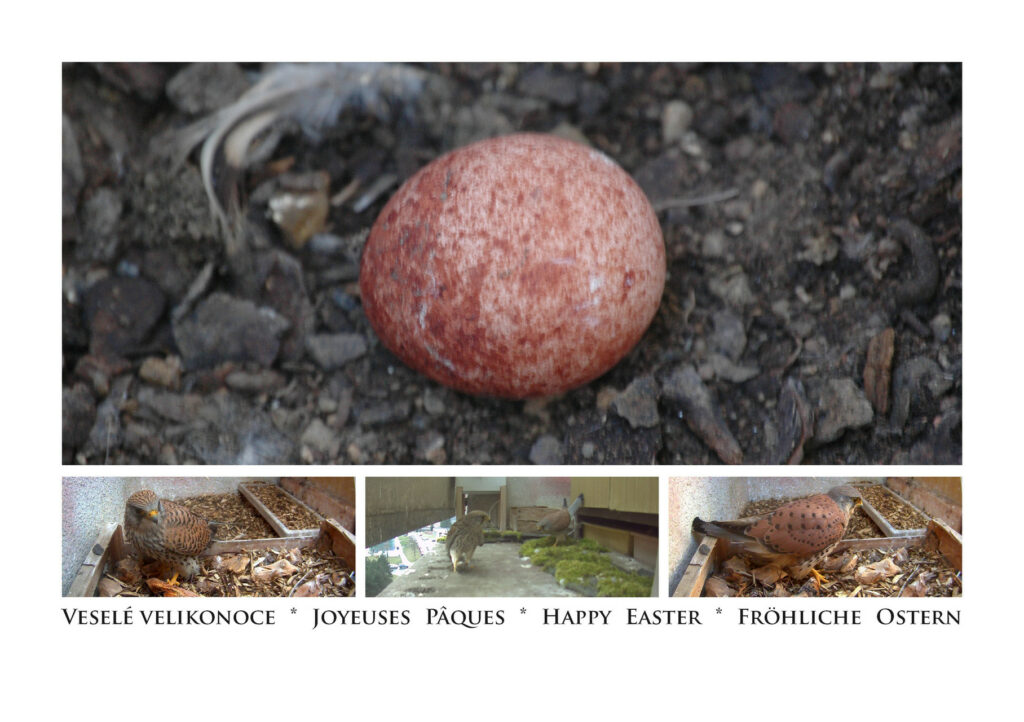 Velikonoce se už kvapem blíží, ale i když ruch kolem míst, která si poštolky vyhlédly nejen u nás k zahnízdění, čilý, tak se možná poštolčích velikonočních vajec letos nedočkáme. A tak jsme použili ku přání veselých svátků velikonočních všem přátelům poštolek starší snímek prvního krásně kropenatého vejce z roku 2009. Poštolčí pár pod ním je ten „náš“ letošní.