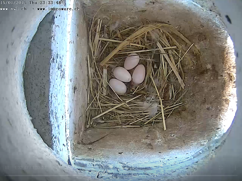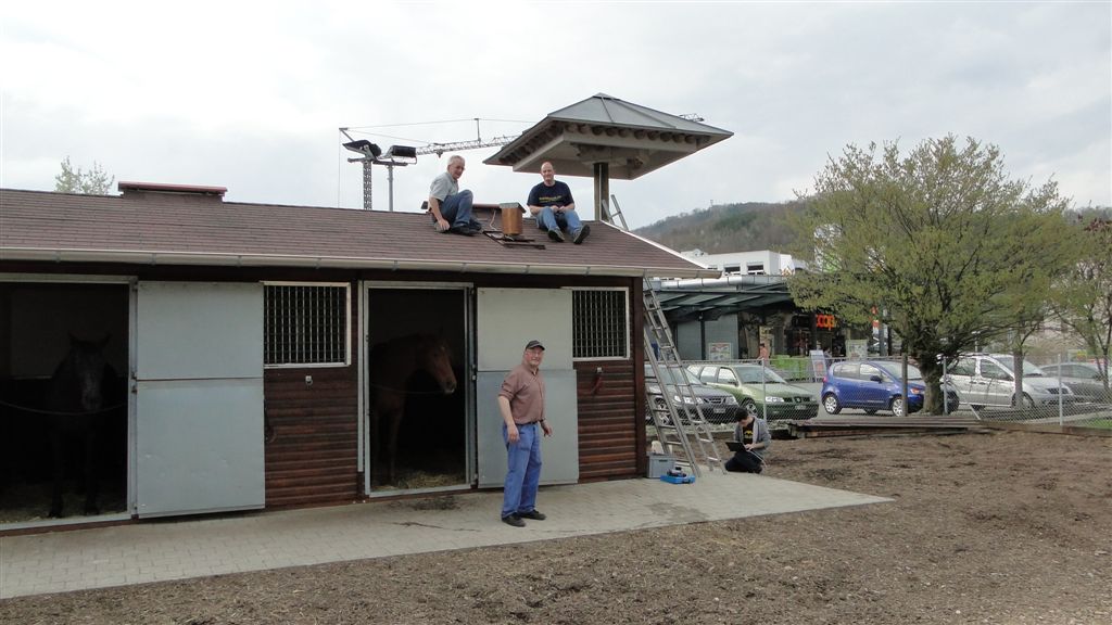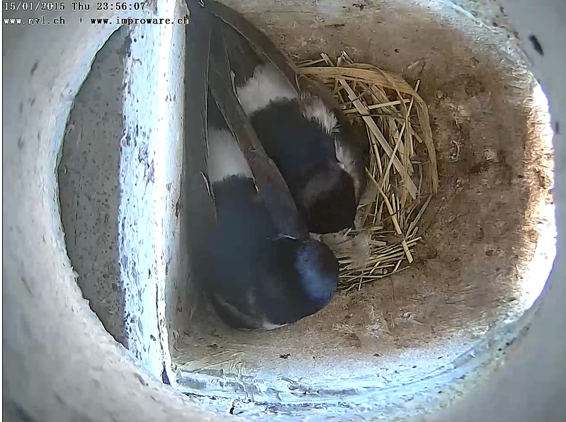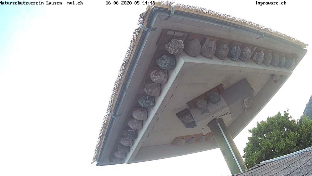 Přenos běží od roku 2010, kdy byla jiřička obecná, která je u nás letos ptákem roku,  ptákem roku ve Švýcarsku. V Lausen jim tehdy postavili „dům“ na muří noze s umělými hnízdy pod stanovou stříškou…