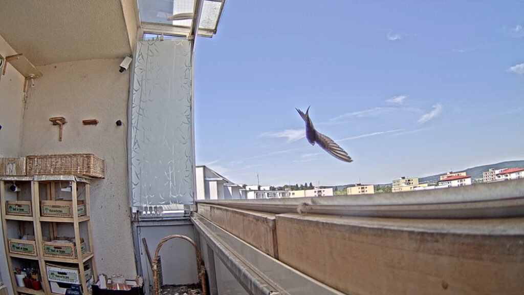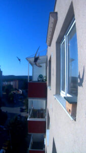 Ale zdá se, že někteří si už našli i jiné příležitosti. Občas dokonce vídáme, jak se vrhají střemhlav dolů přes stříšku nad lodžií.
