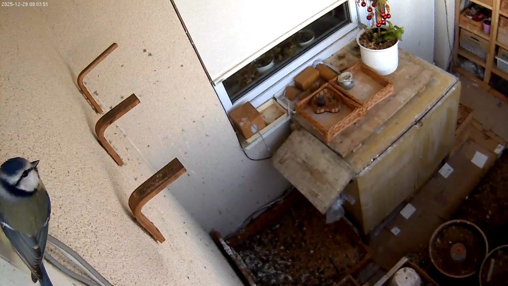 Když nejsou poštolky doma, létá do jejich lodžie již tradičně různá drobotina. Dnes si ji obzvláště důkladně prohlížela jedna modřinka.