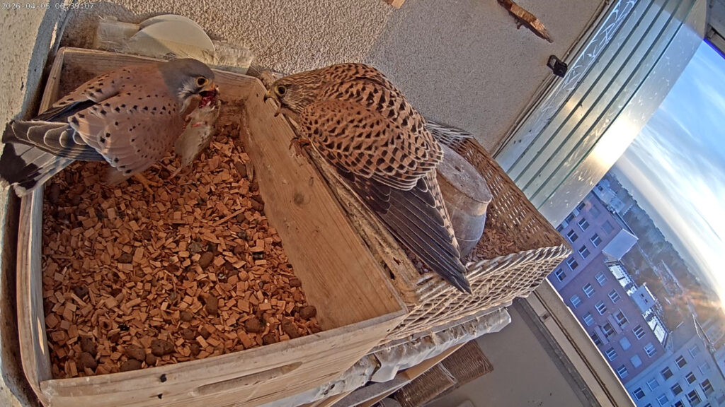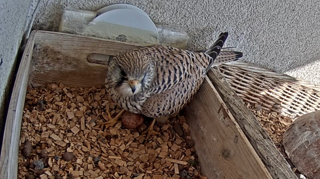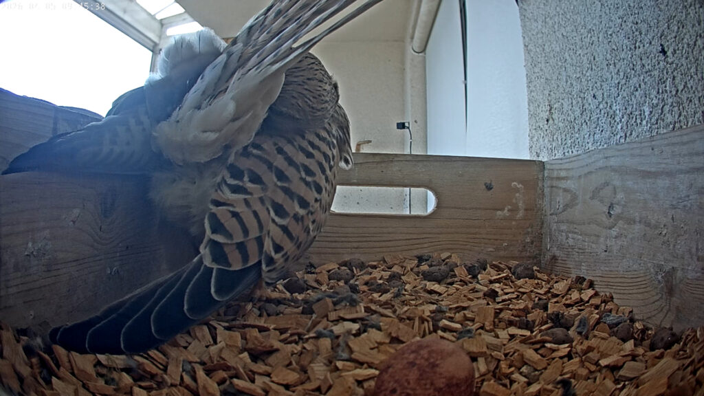 Ta už několik posledních dní tráví poposedáváním v hnízdní bedýnce. Dnes po ránu se nejprve s panem poštolkou věnovala činnostem pro toto období obvyklým.