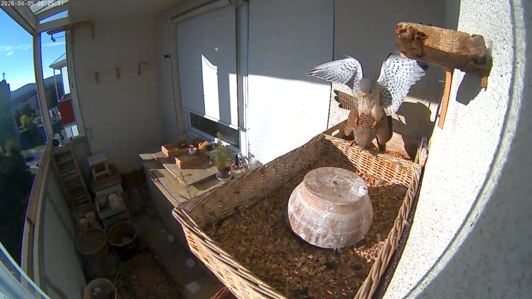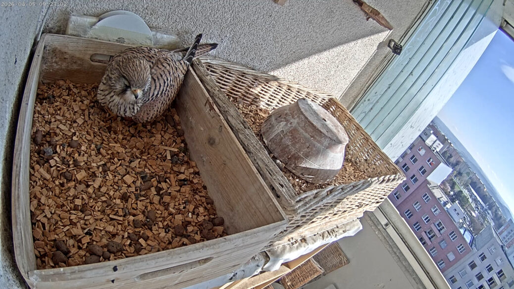 Ta už několik posledních dní tráví poposedáváním v hnízdní bedýnce. Dnes po ránu se nejprve s panem poštolkou věnovala činnostem pro toto období obvyklým.