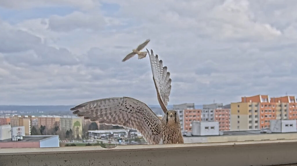 Dnes „naše“ domácí poštolky vyrušila cizí poštolka. Vřítila se za rozčileným domácím samečkem. V patách jí ovšem byla domácí samička, před se kterou cizinka rychle klidila a pak ještě nějakou chvíli obletovala kolem zatímco domácí na ni hlasitě pokřikovali. Pokračovat ve čtení „Jedna navíc“