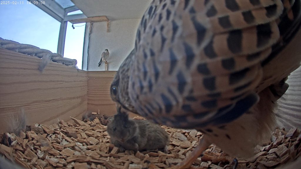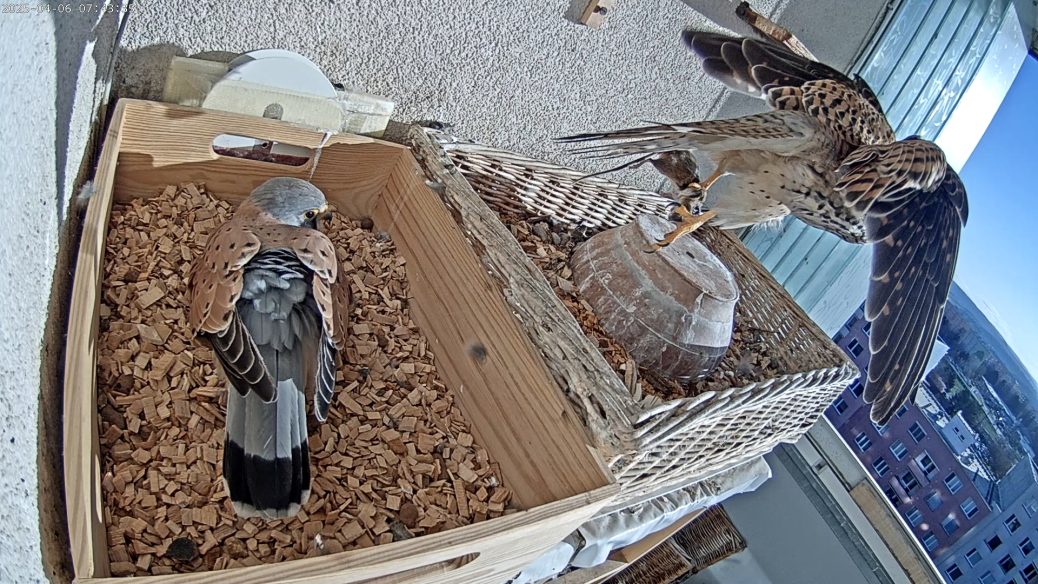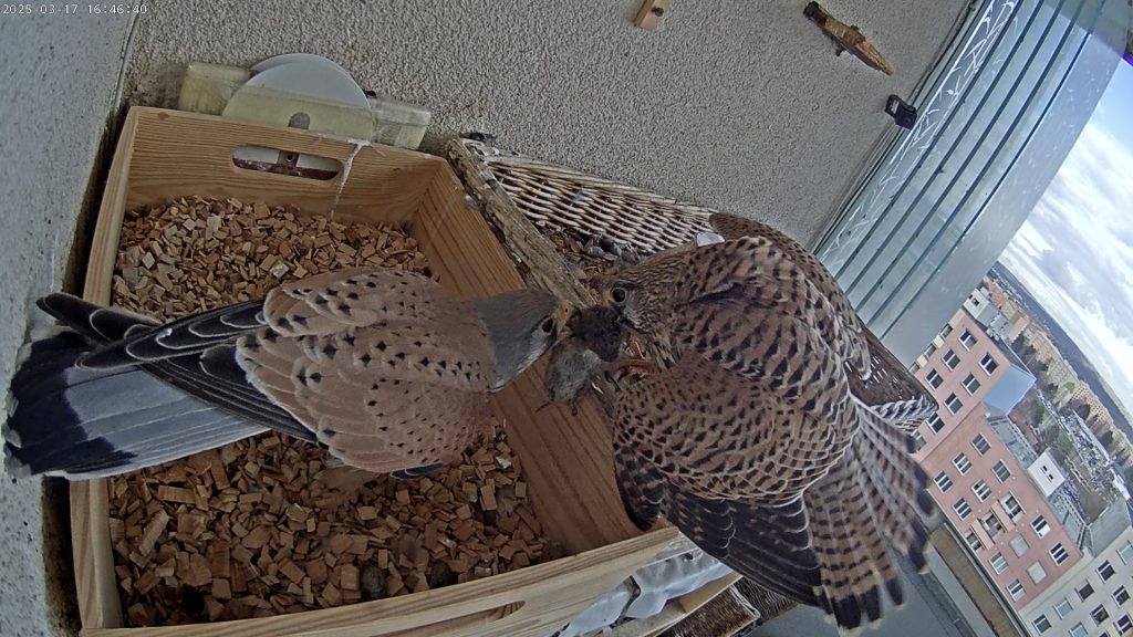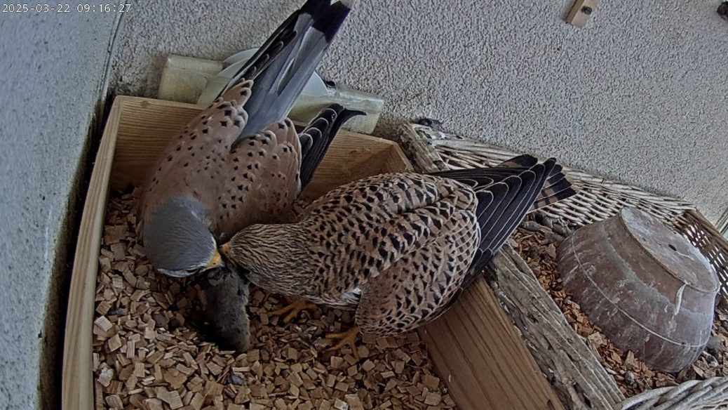 „Naše“ poštolky se aktuálně objevují přes den před kamerami hlavně, když jde o to, aby sameček předal samičce dárek – nejčastěji hraboše. Pokud ho ona neodchytí někde na příletu, je místem předání hnízdní bedýnka. Předávku je pak možno sledovat na kameře č. 1 (případně 2 či 3) a relativně zblízka na kameře č. 12 a 15. Pokračovat ve čtení „Technika předávky“