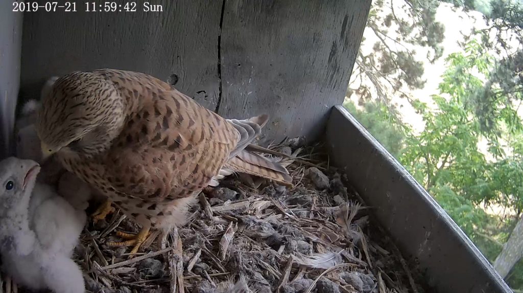 Jak napovídá název stránky s přenosem, Ze života kalousů, budku využívá k hnízdění kalous ušatý. Poštolky ji po nich využily jako druzí nájemníci v roce 2019. Stránky provozuje ZO ČSOP Břeclav (viz též Ochrana ptáků).