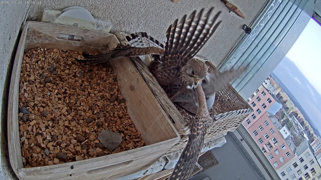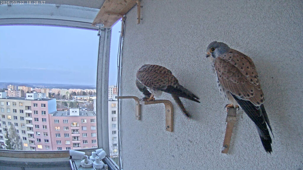 „Naše“ poštolky trávily dnešní jarní den většinou mimo lodžii. Až v podvečer (v 18:06) se přiřítil pan poštolka s hrabošem a hned za ním ne jedna, ale dvě poštolky. Pan poštolka unikl i s hrabošem, ale dámy se popraly. Pokračovat ve čtení „Dvě zájemkyně o hraboše“