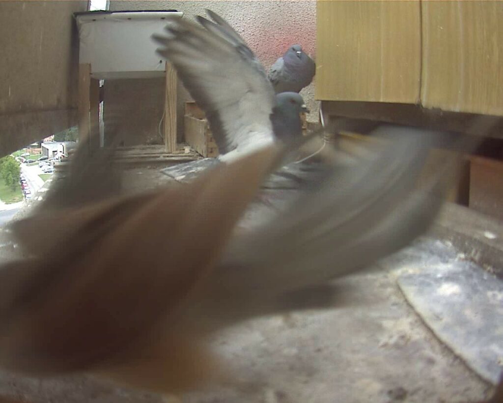 Naše lodžie, ideální pro poštolky, je přirozeně přitažlivým místem i pro holuby hledající místo k zahnízdění. Dlouholetá zkušenost nám říká, že pokud se někdo domnívá, že tam, kde hnízdí poštolky, nezahnízdí holubi, je na omylu.